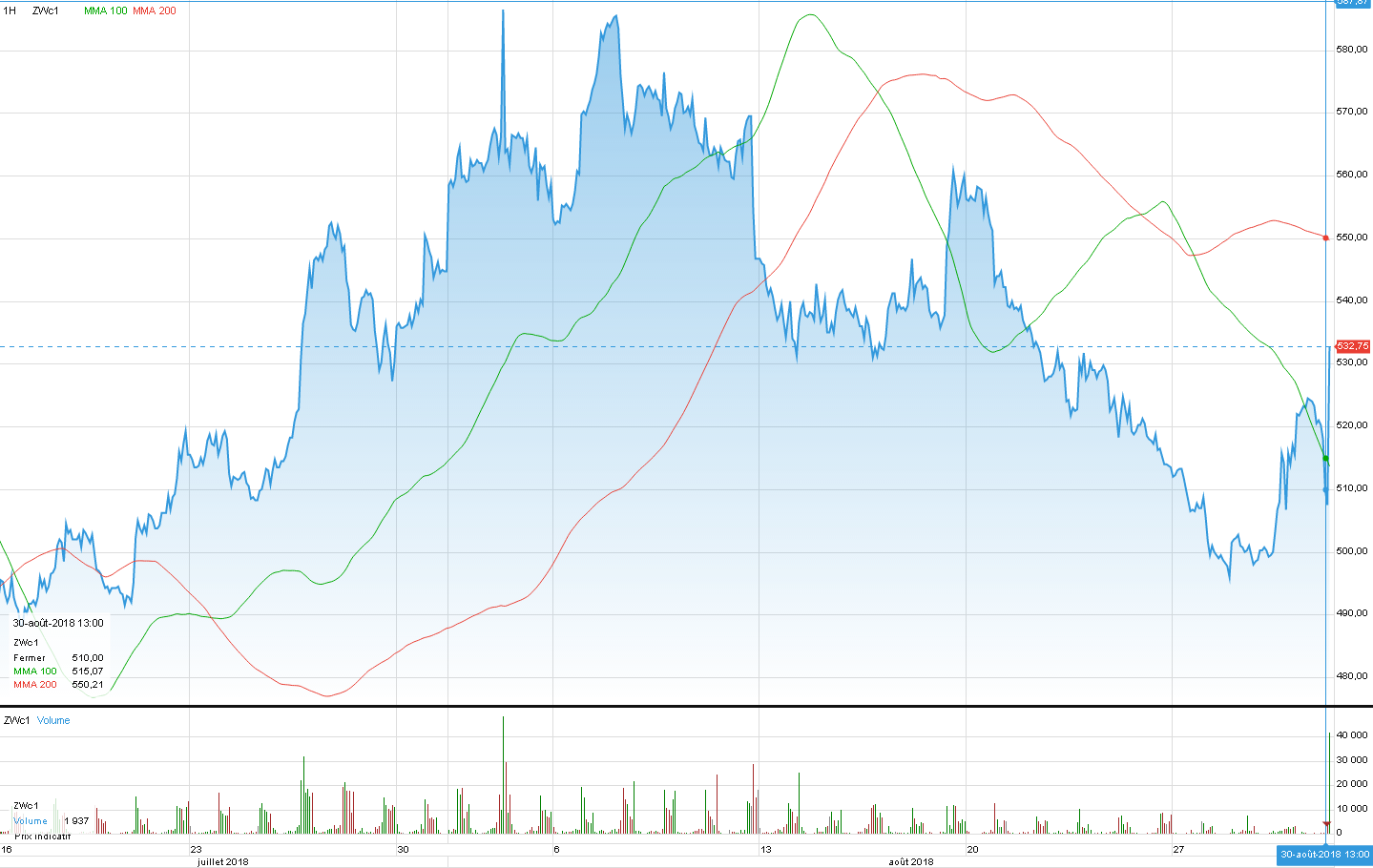 ca me parait en mode agressif en effet. Ceci dit les volumes sur le Wc1 semble colossaux en ce moment pour invalider l’ETE !. Mais j’ai un doute sur ce que ma plateforme m’affiche pour le Wheat…