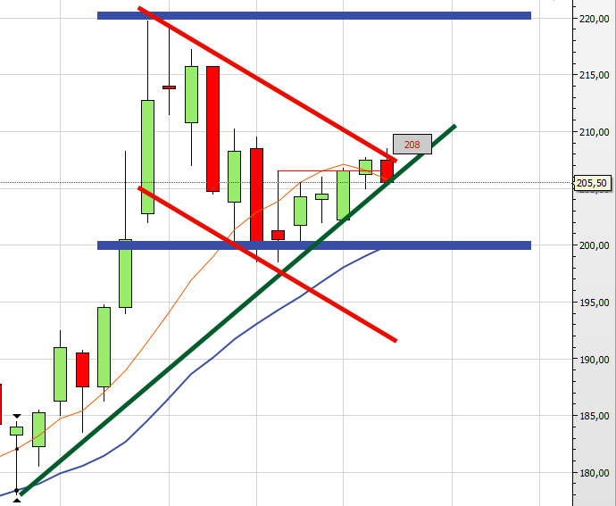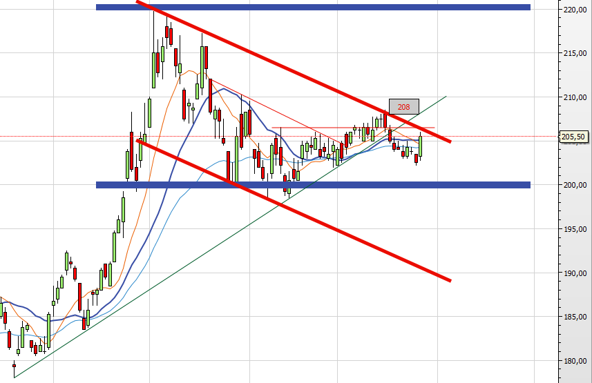 VENTES EN HAUT SUR RÉSISTANCE… 210 220… 240 ?