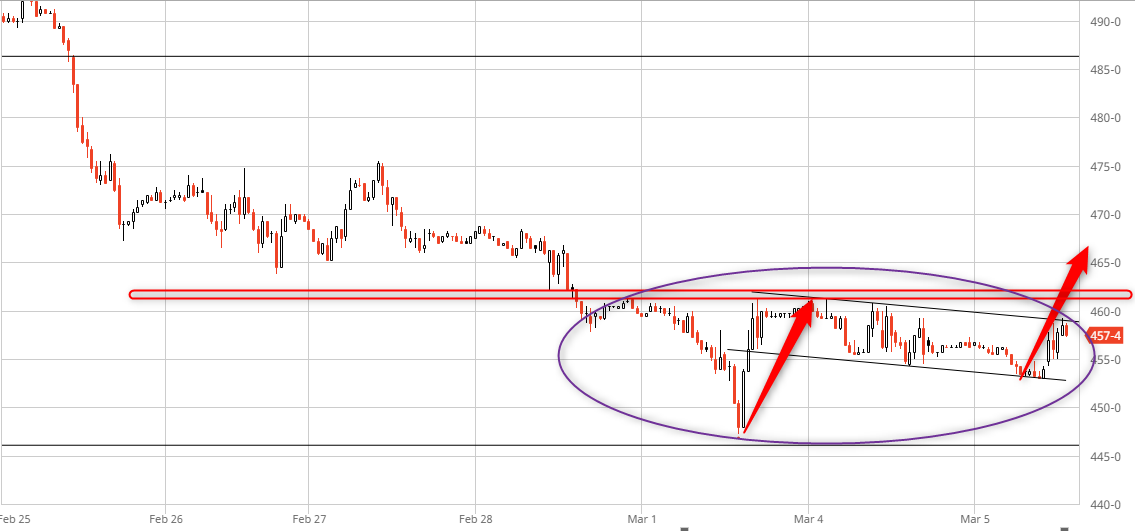 plutôt bon signe si il sort par le haut et qu il dépasse 460 465, on devrait effectué le rebond attendu par la suite …