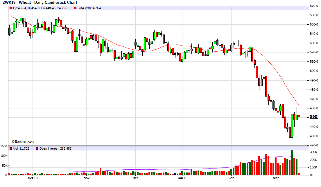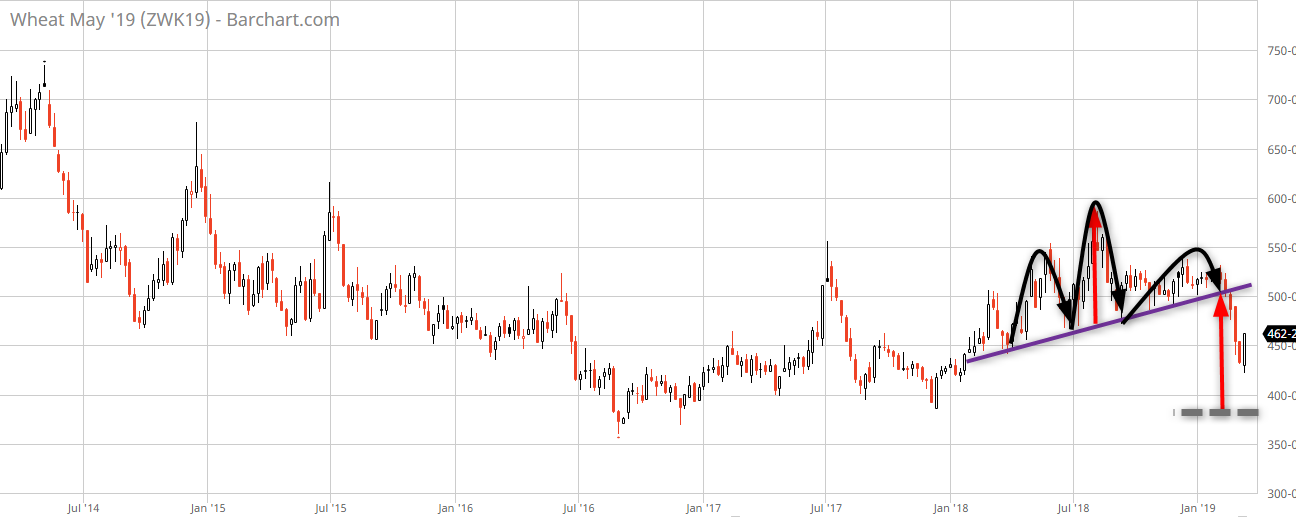 Wheat, le bas de cette semaine pourrait constituer un point bas, je le surveille de près, pour être validé le wheat devra s’installer au-dessus de 450 puis 465.