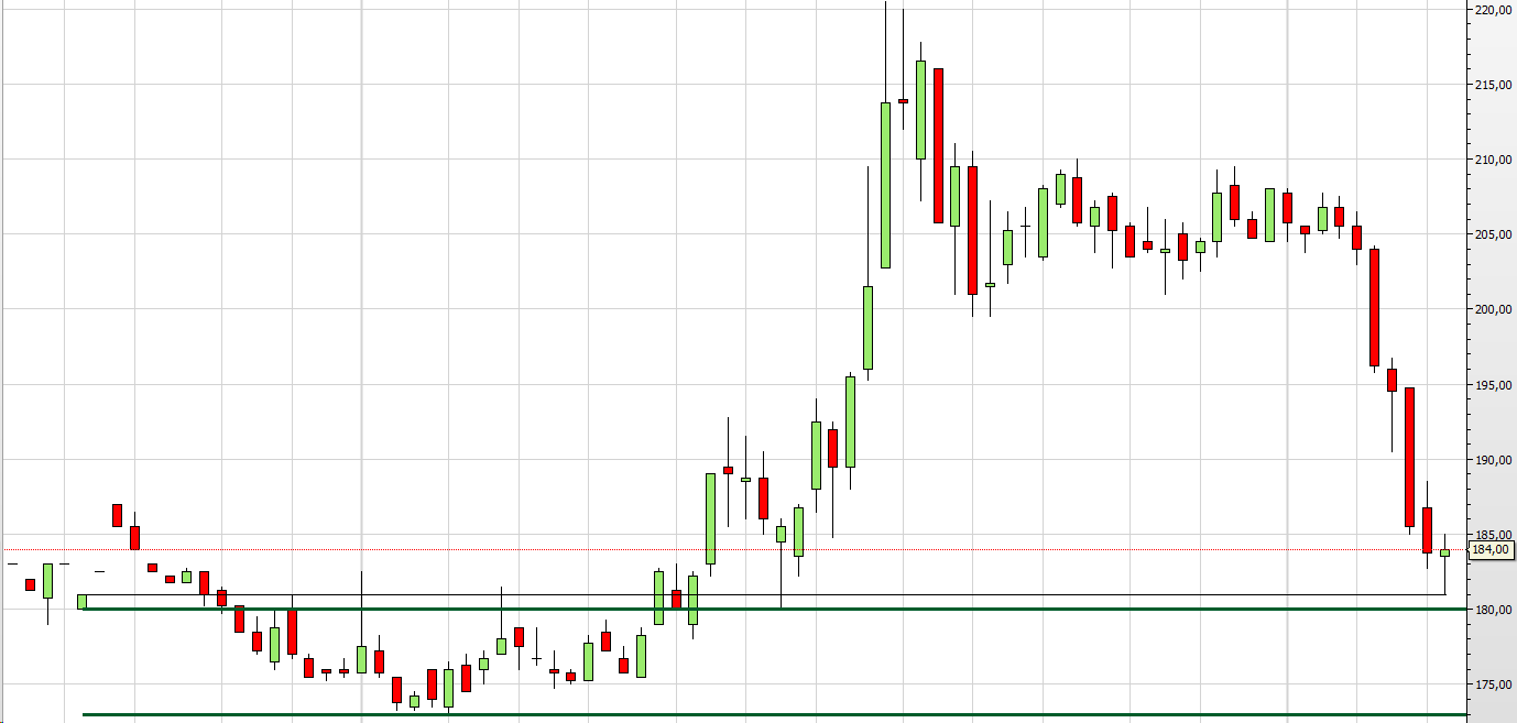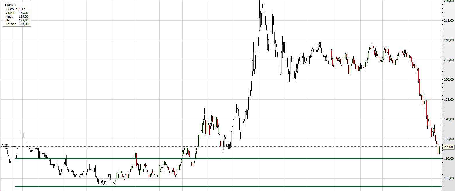 sous 190 et la MM 20 jours, et reste en position de sortir par le haut au bon vouloir du wheat avec 465.