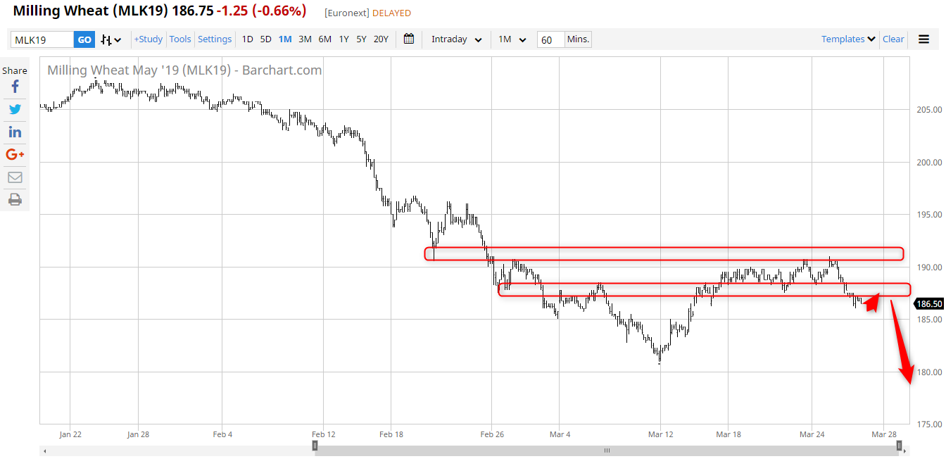 On arrive sur la fin de campagne, comme indiqué je n’attends pas de fort rebond, le blé a déjà rebondi de 10 € depuis le bas, 181 à 191 sur Mai.