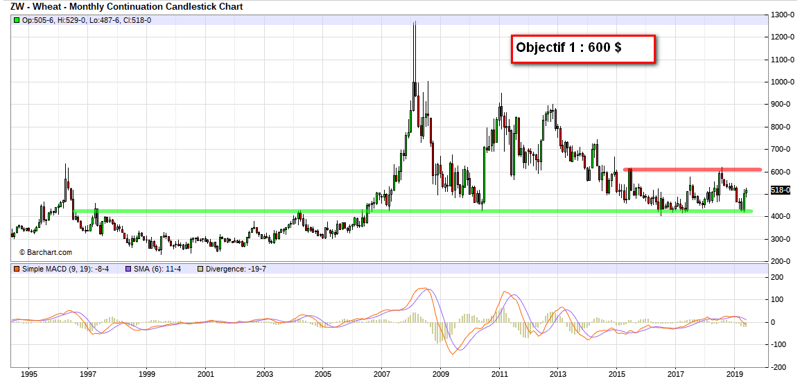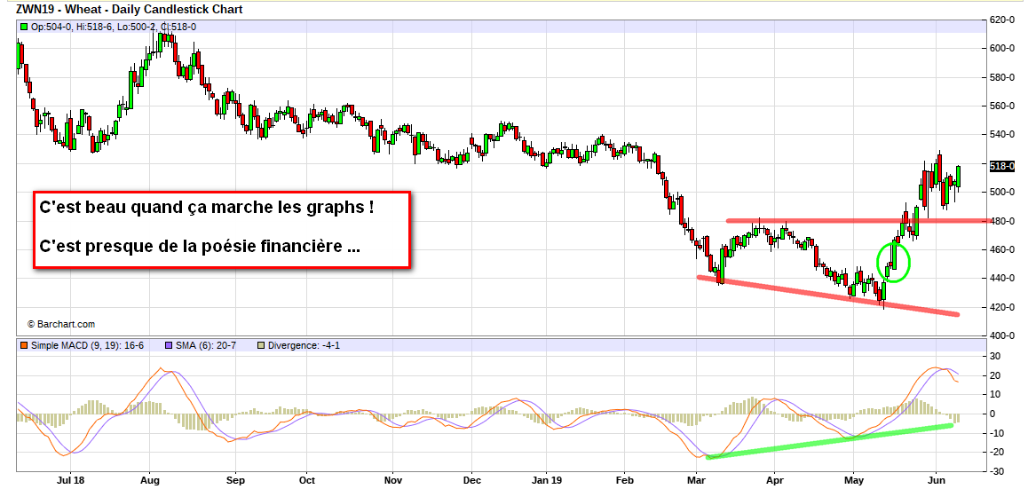 Ensuite on attend que le wheat reprenne position sur le seuil 540 (graph Déc juste au dessus).
