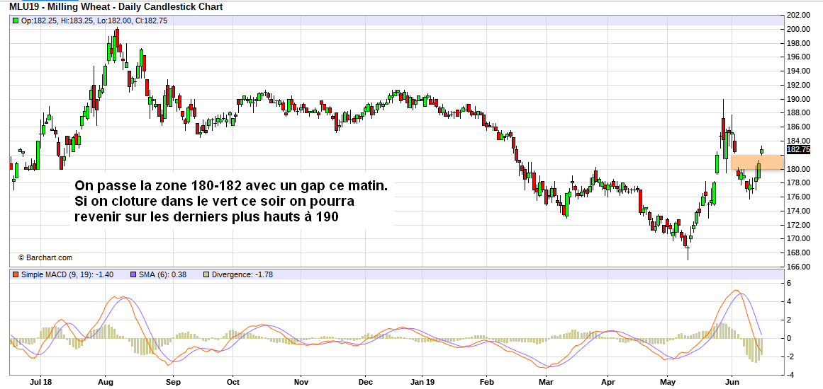 Le wheat à +2,9% et notre blé à +0,3%.Toujours à la traine;Demain rattrapage j’espère;on va nous dire que la parité a été défavorable histoire de meubler
