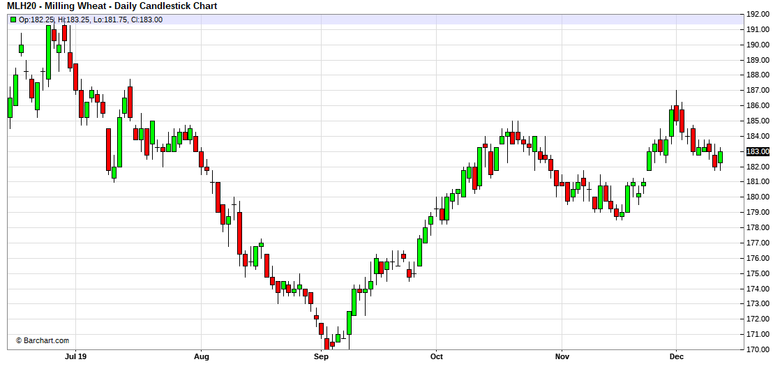 Le blé poursuit son rebond au-dessus de 180.