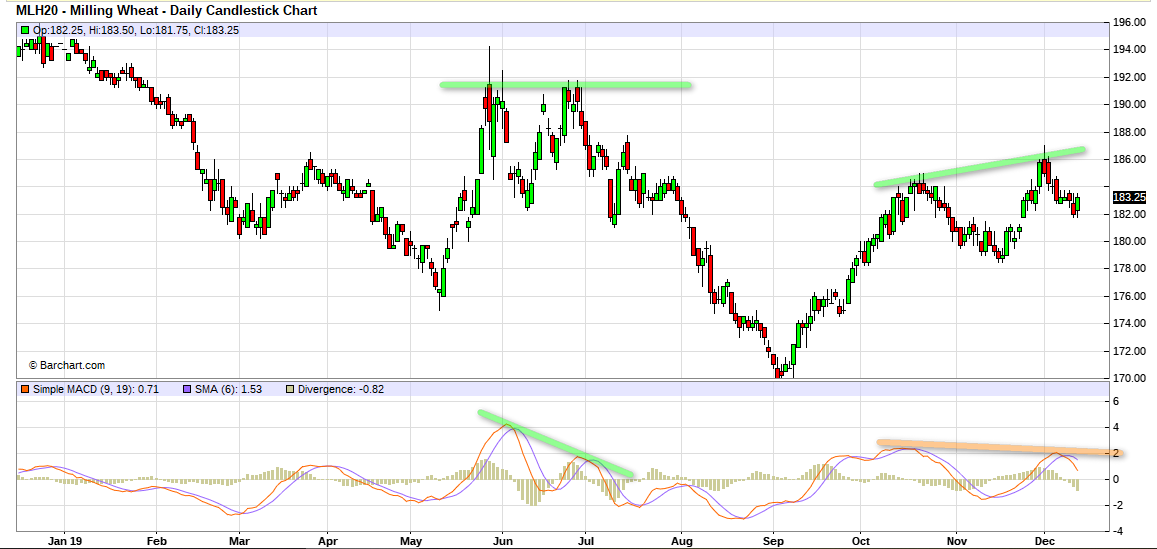 il y a une divergence MACD non validé sur le blé.