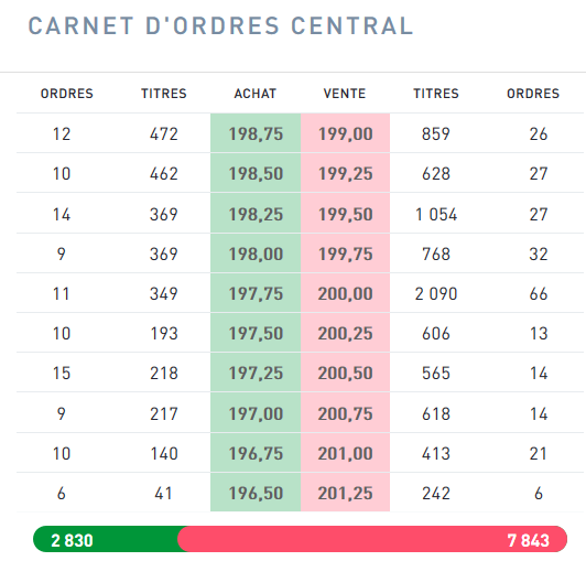L’alerte est magnifique avec le carnet d’ordres ultra vendeur sur 200 depuis ce matin.