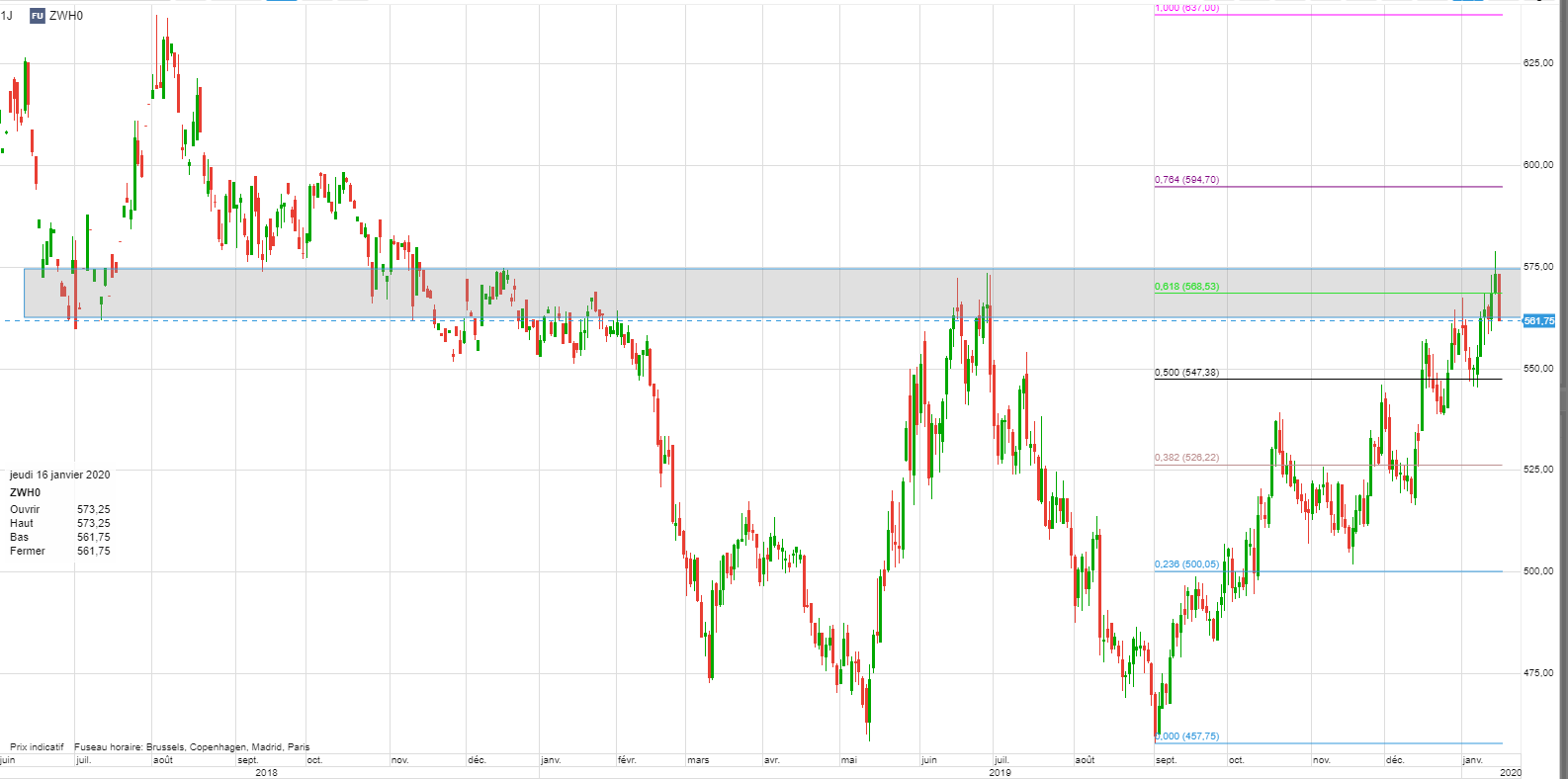 Le blé suivra le wheat, et au-dessus du seuil 600 le marché pourrait pousser.