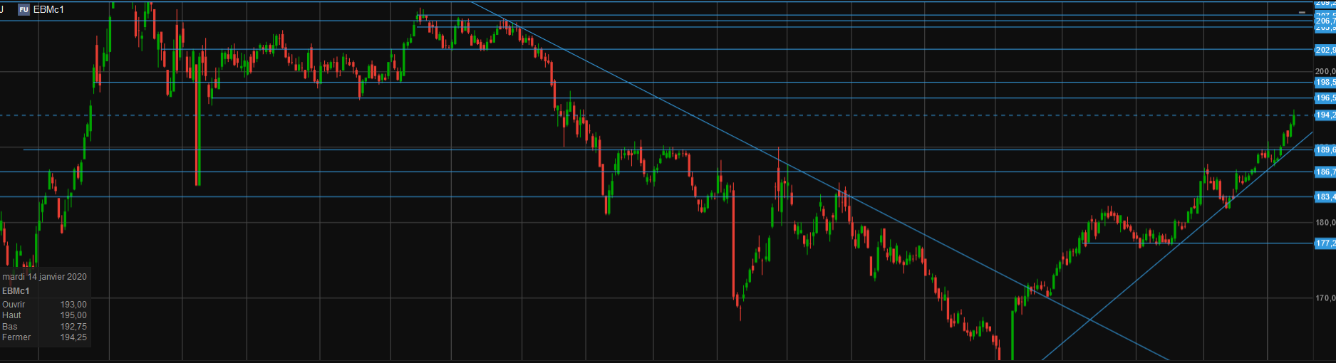 la prochaine résistance en blé pour moi c’est 196.5, et surtout 198.