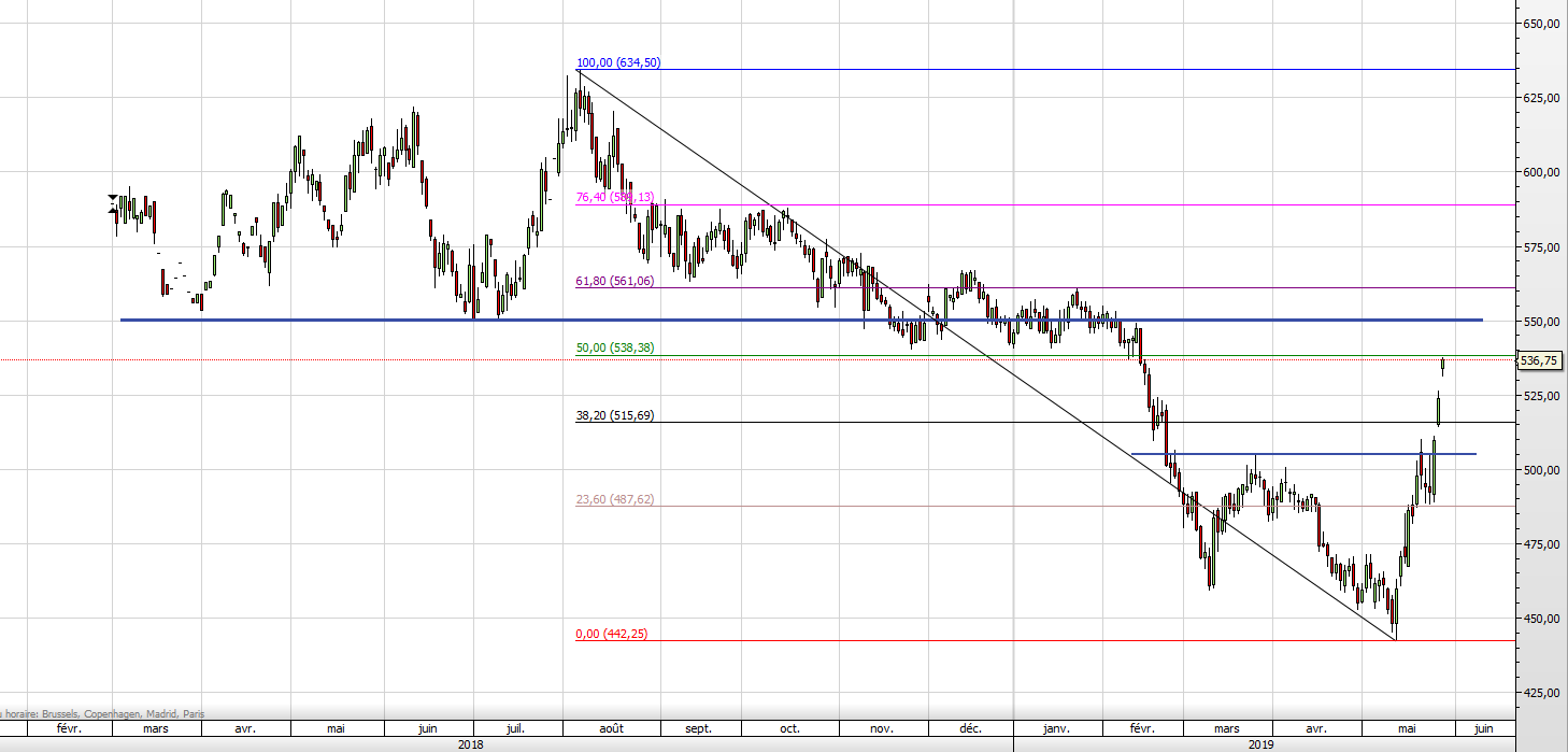 Signal d’accélération une fois que le wheat aura franchi 538 direction zone 550.