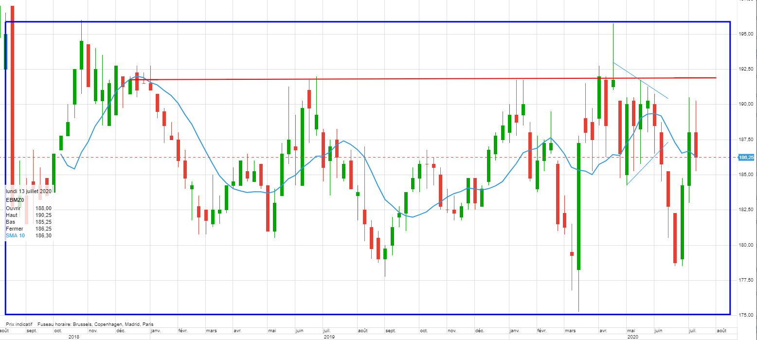 A court terme la zone de relance à observer reste les 50% du cadre, soit le niveau 185.