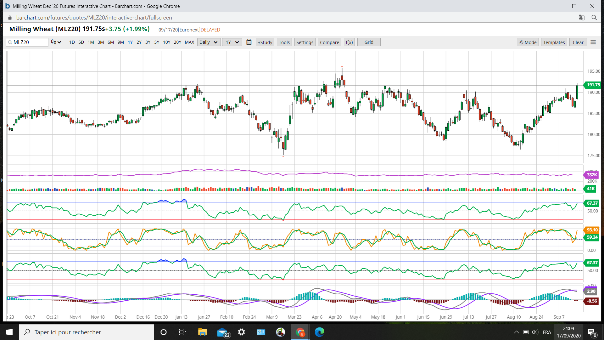 .A voir demain ?Rebond de fin de journée qui fait suite au wheat.La cotation du blé hebdomadaire nous en dira plus.