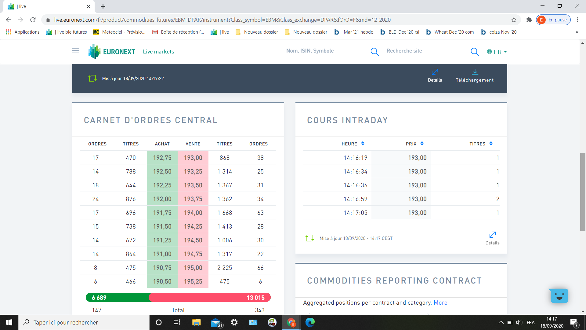Alors qu’ici avec les calls et achats 170-180 nous allons largement augmenter les ventes. Idem colza 340-360.