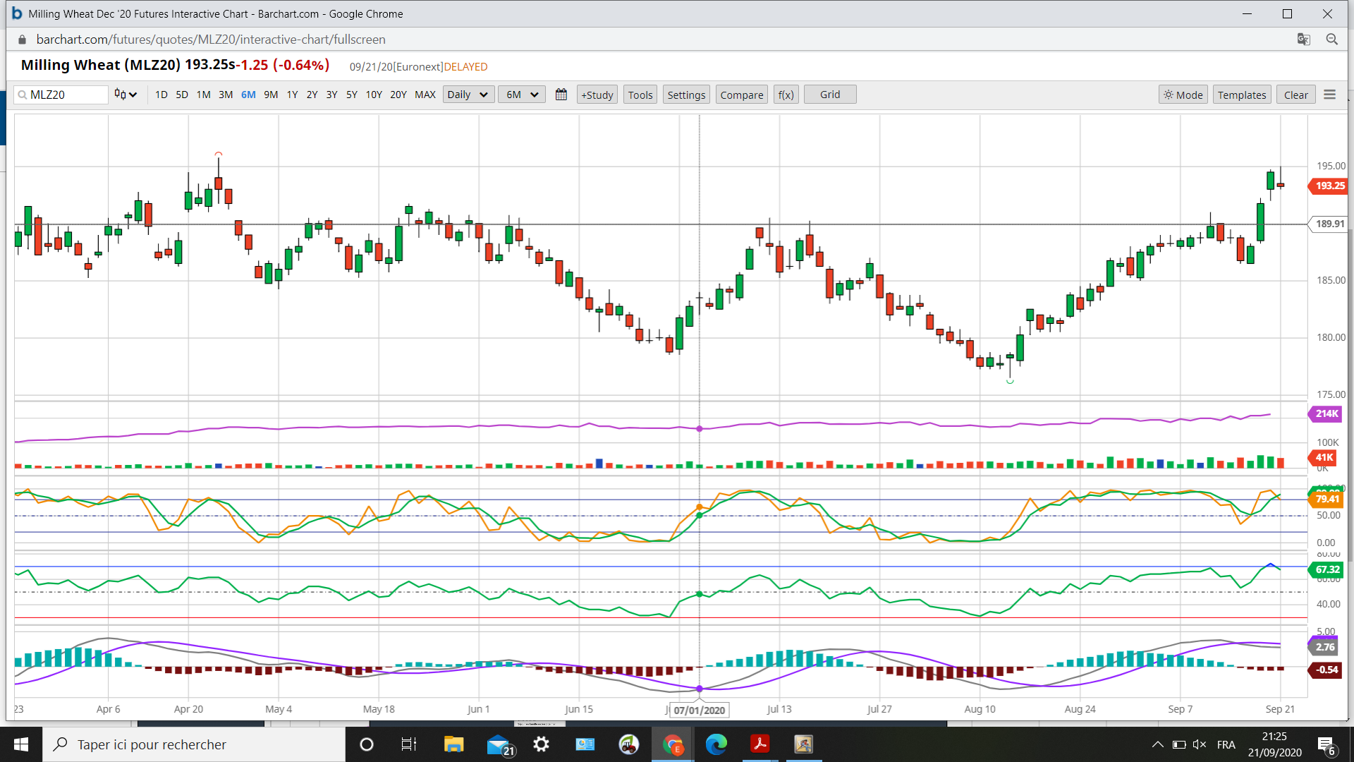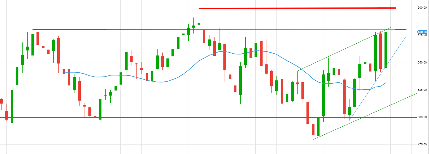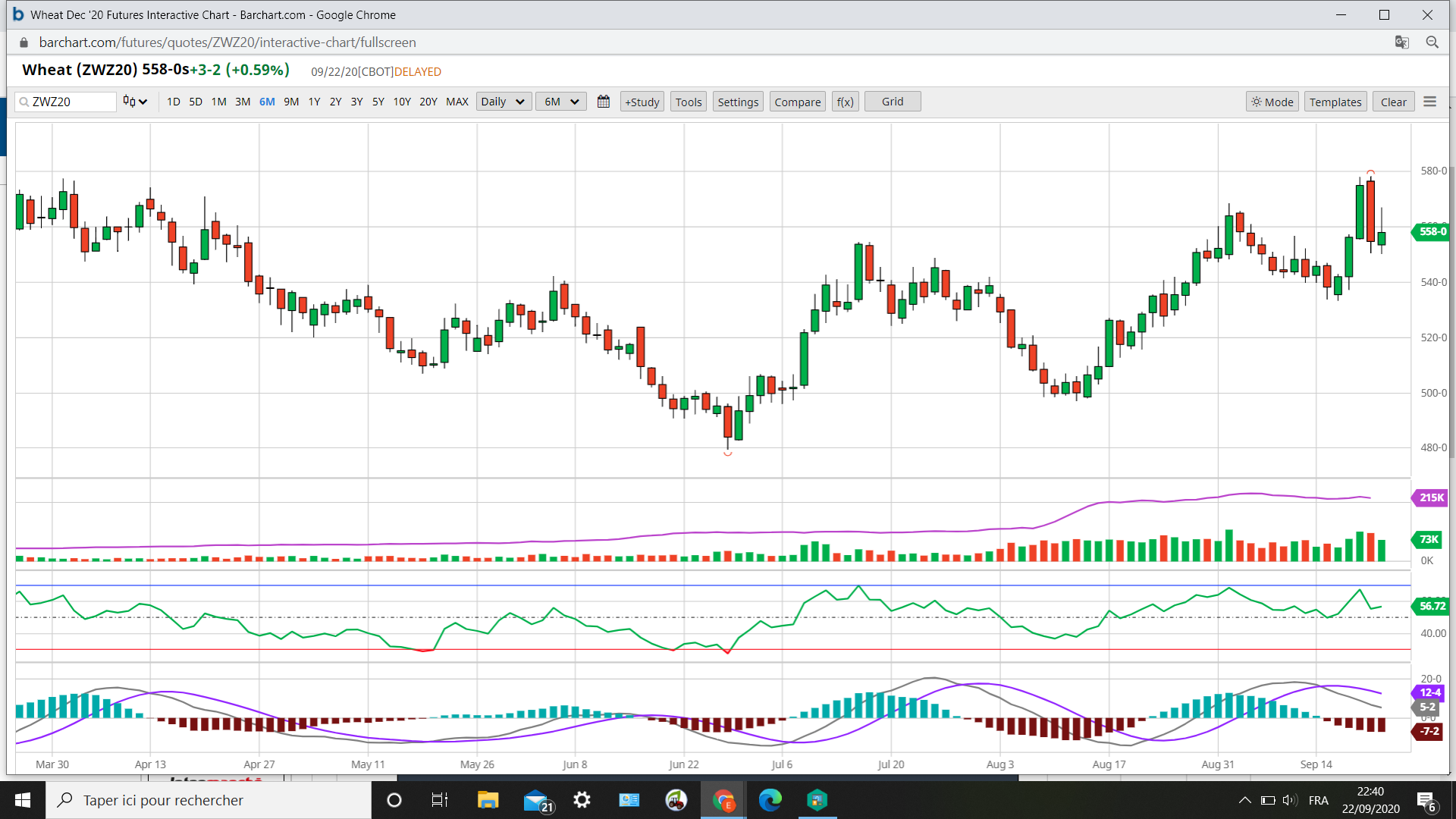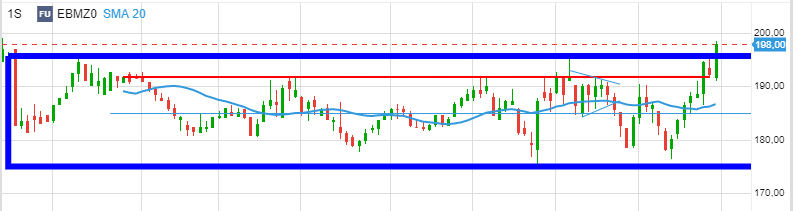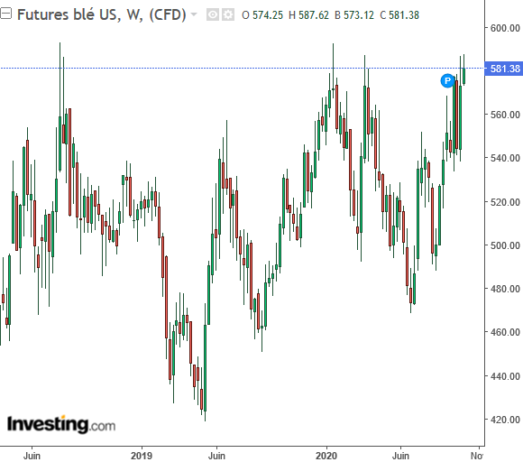 Voyons d’abord 580 et 195/198 sur la semaine. Haut du range de 2 ans. Test décisif en blé.