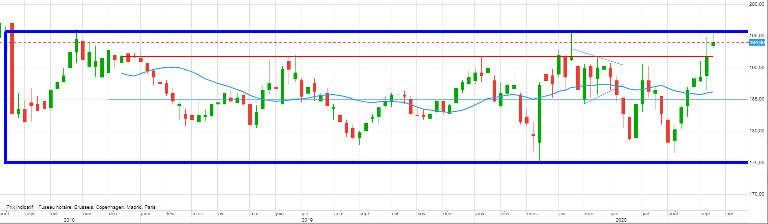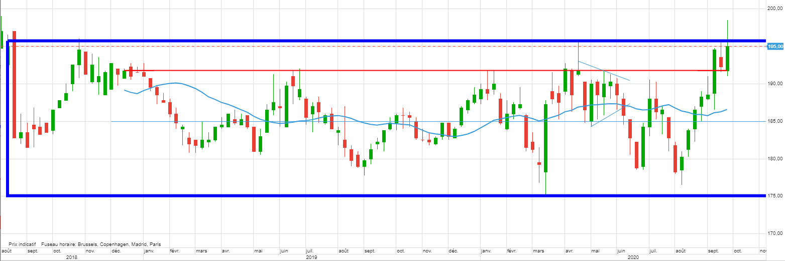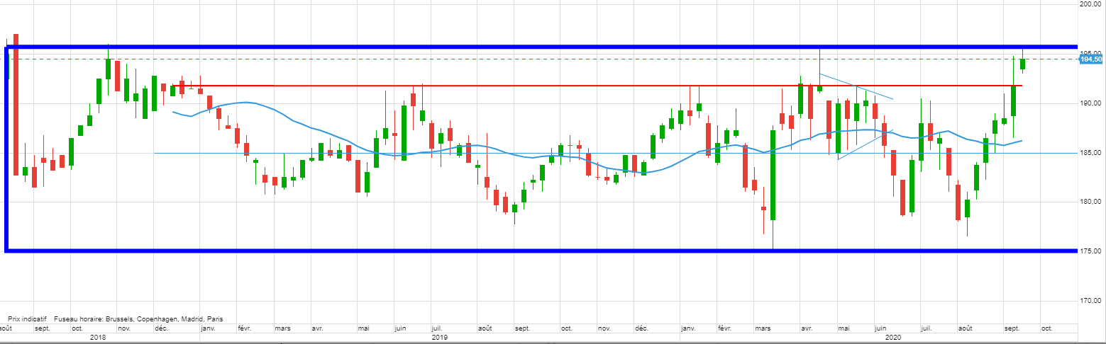 Ensuite la campagne est encore longue, nous verrons si les cours peuvent reprendre appui plus bas pour enfin percer ce range de 2 ans. Pour s’élargir dans le cadre long terme.