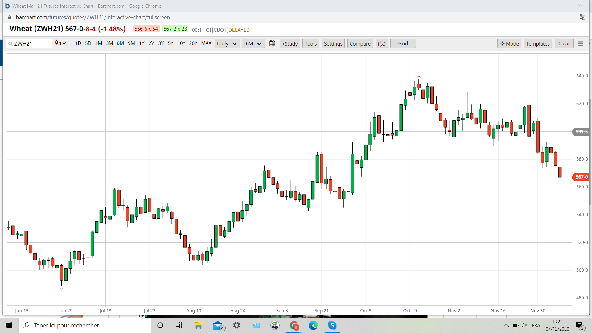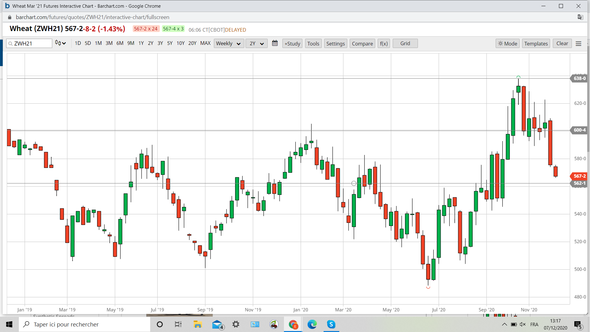 La figure en développement sur le wheat evoqué il y a vingt trois jours s’est bien confirmé ETE PULL BACK et retour sur les 560 .