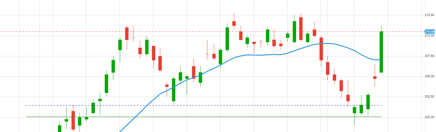 Le gap haussier est trompeur/du volume en perspective d’ici ce soir/après la zone 210 en point de vente la zone 205??