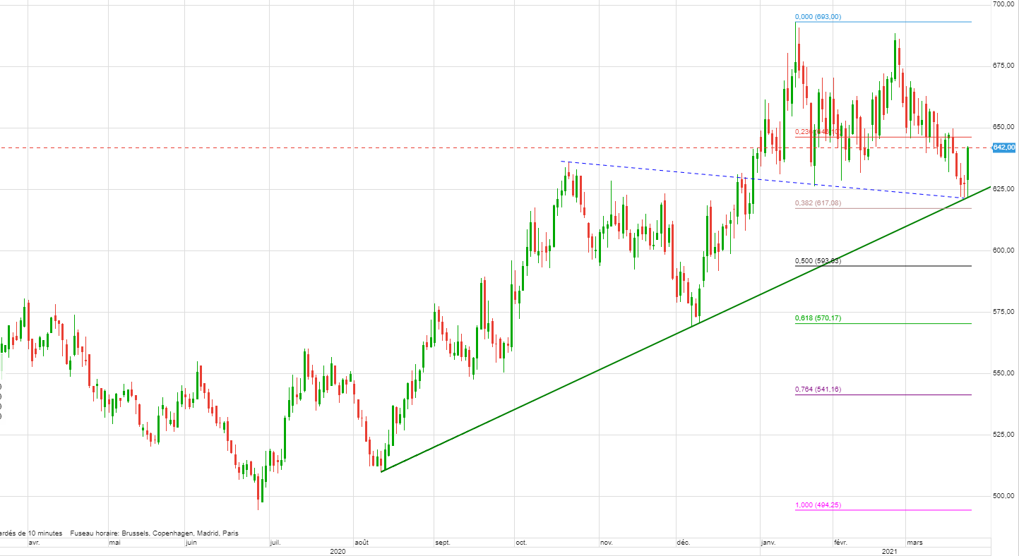La zone 215-220 est fortement travaillée, car on sait tous que si ça doit rebondir rapidement c’est ici.