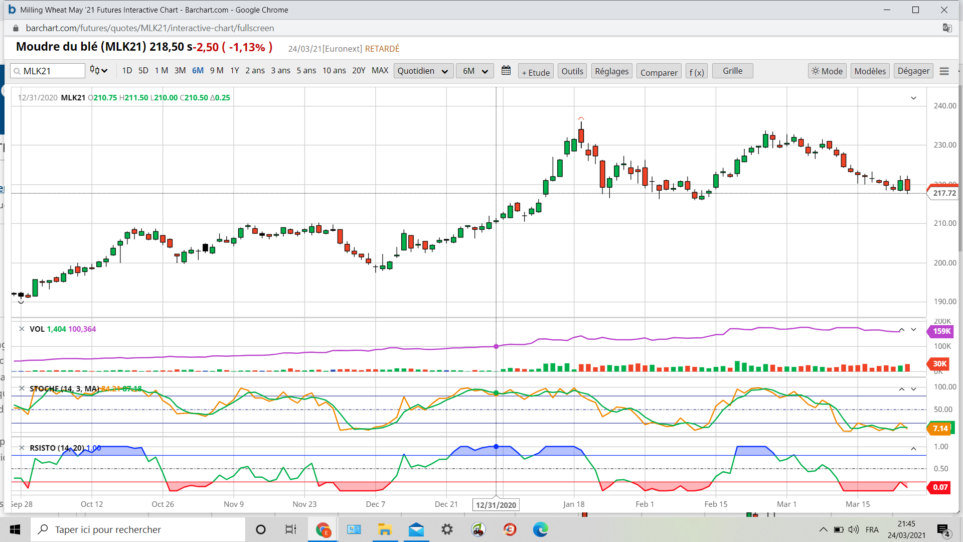 Ex. le blé mars 22 dernièrement, ou le colza nov 21 aujourd’hui.