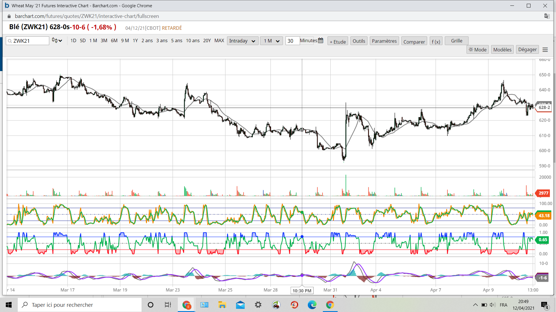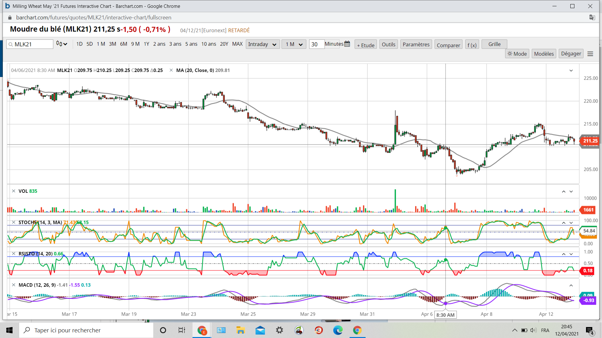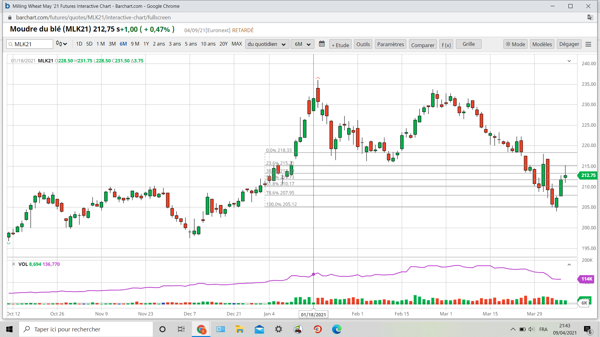 Revente cet après midi de mes lots blé 20 214.25 ,j’ai pas suivi les conseils de Manu acheter support 205 .Achat 207