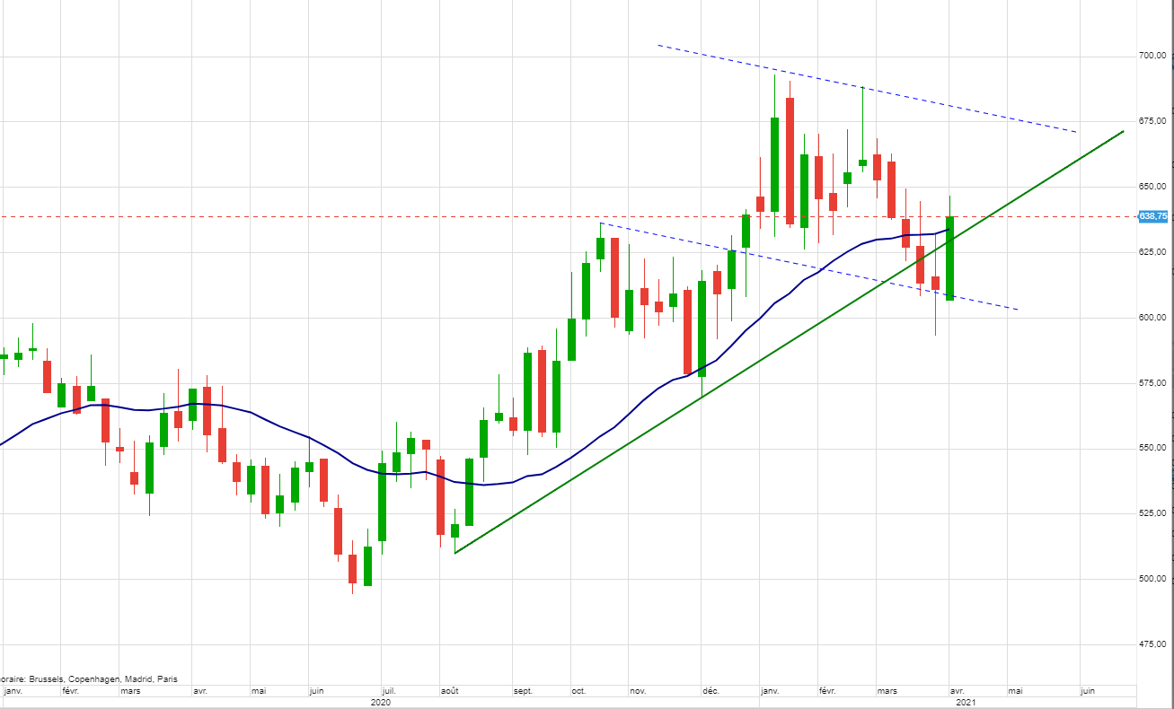 L’objectif visé pour l’instant est 640 pour la suite rien est fait.Demain certainement un peu de volatilité.