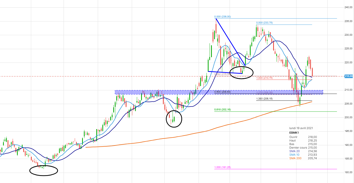 Au-dessus de 210 le rebond se poursuit.