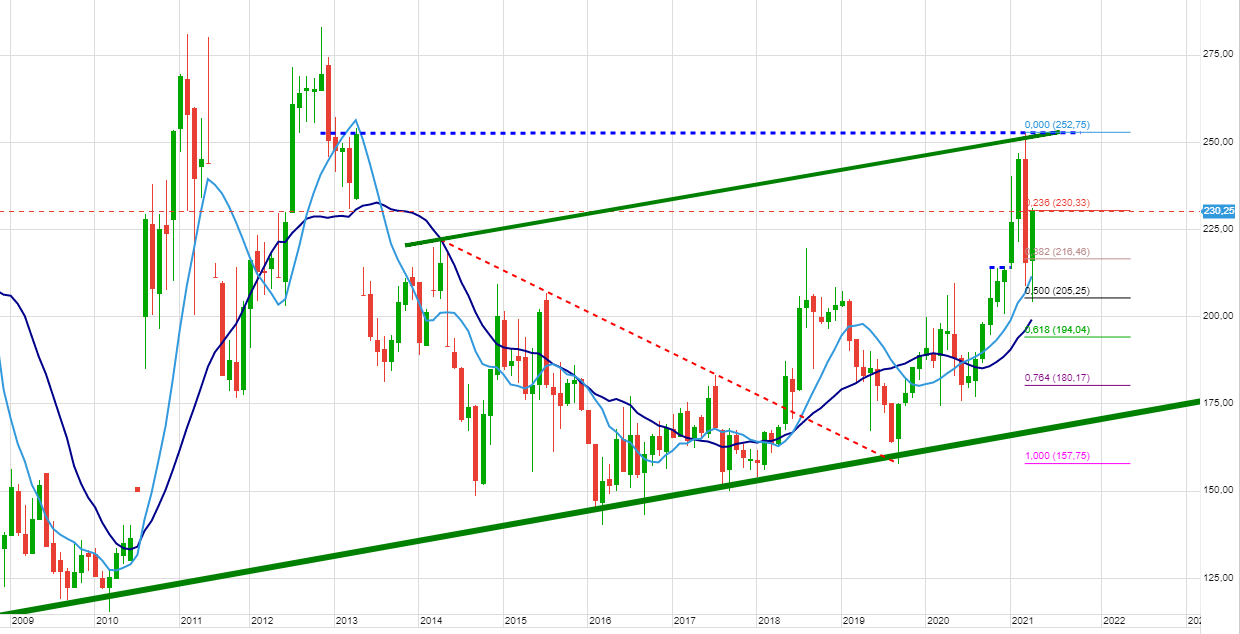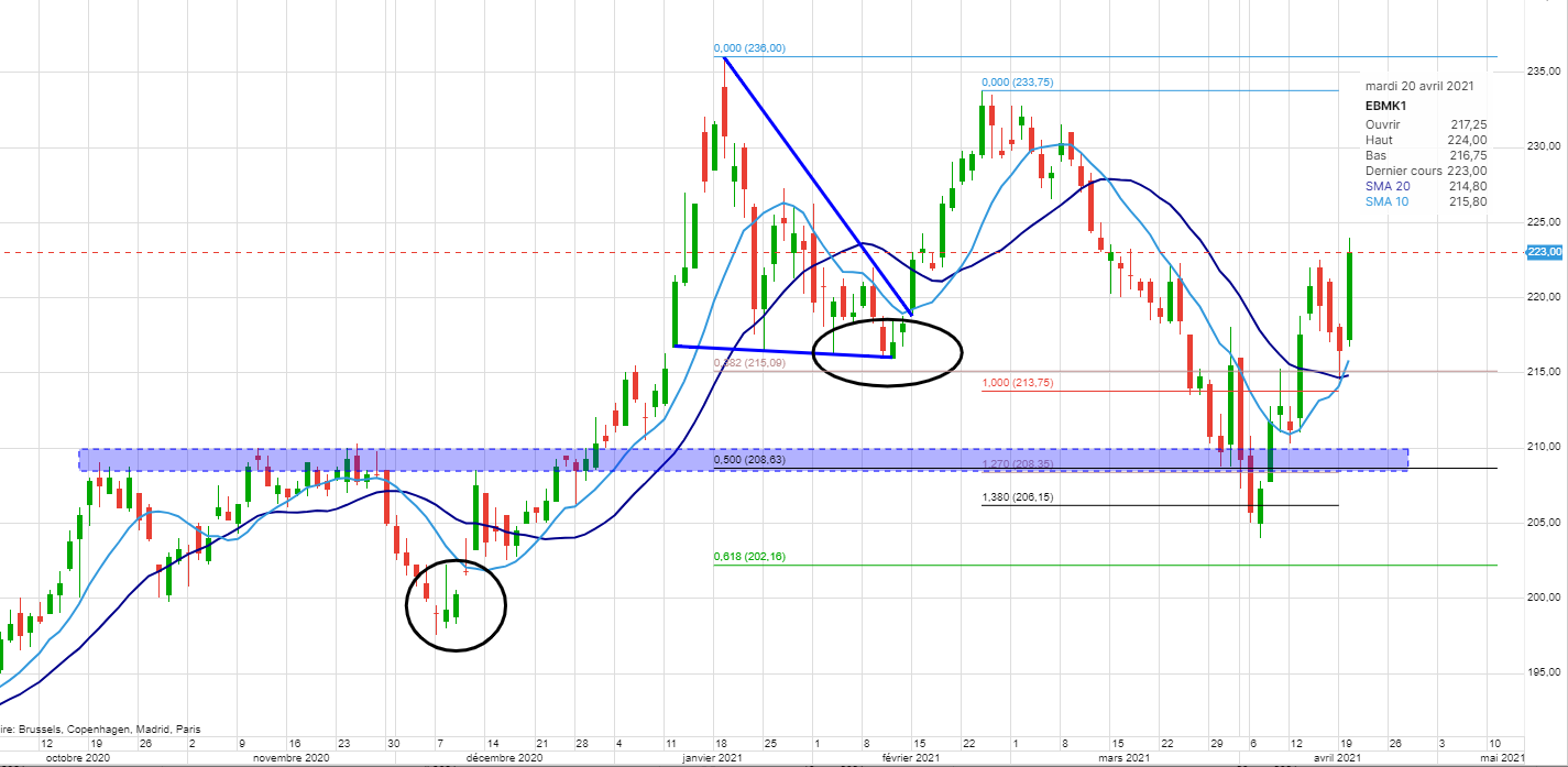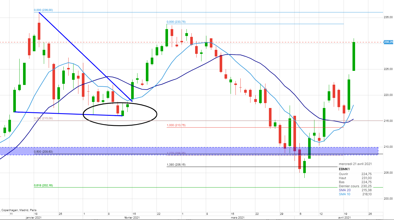 Voyons par étape, d’abord en clôture la tenue de 230.