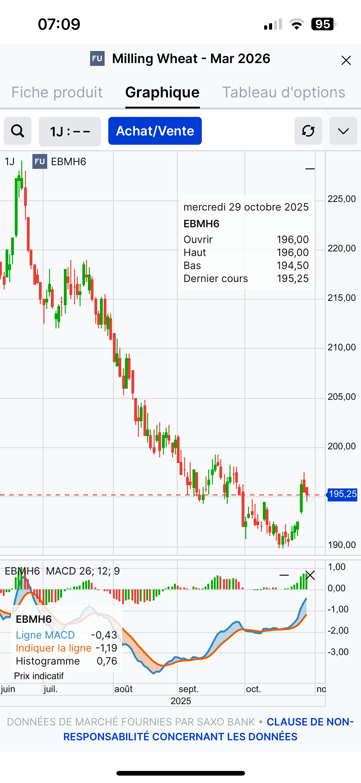 Après quelque soit la plateforme, la vigilance se porte sur la bascule d’une échéance sur l’autre, c’est là que certains cours traités n’apparaissent pas car la plateforme a déjà basculé sur l’échéance suivante, qui est aussi une fois par an la récolte suivante, donc décalages parfois amplifiés selon le jour choisi pour basculer l’échéance.