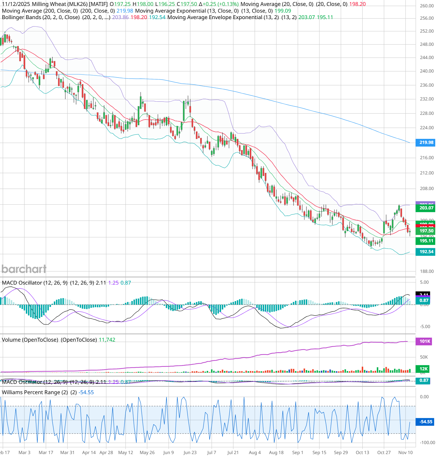 Pour terminer la semaine, le Mai est bien pile venu en creux sur 195, et clôture modestement à 196. La relance du wheat sur son gap restera le moteur nécessaire.