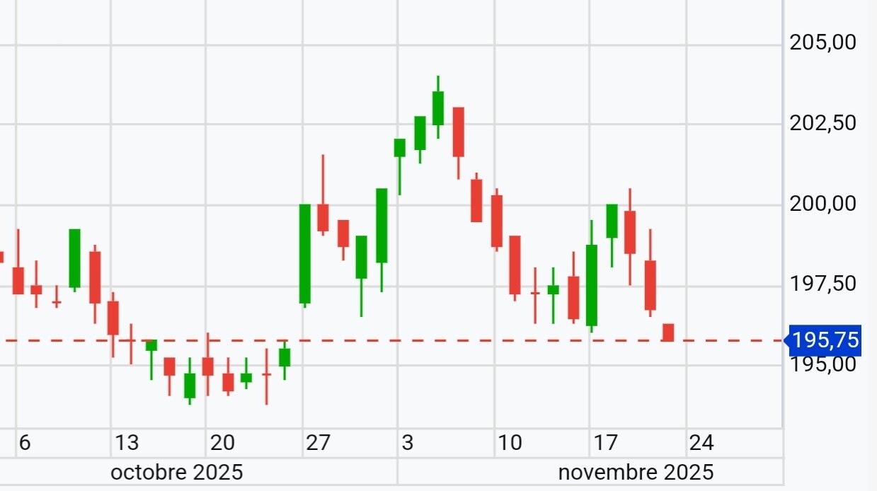 Si les cours rechutent facilement sous 195 pour aller combler et ne pas rebondir immédiatement sur le gap, ils vont continuer à dériver à plat en range, dans le meilleur des cas. On est toujours proche des supports de fond long terme.