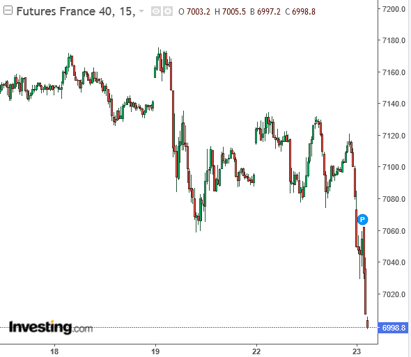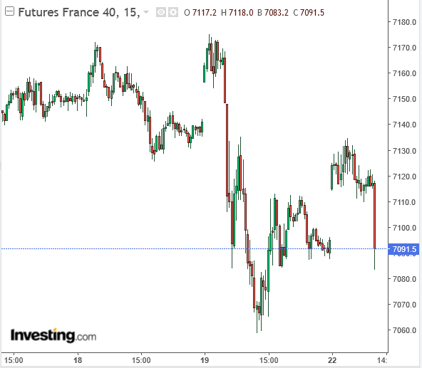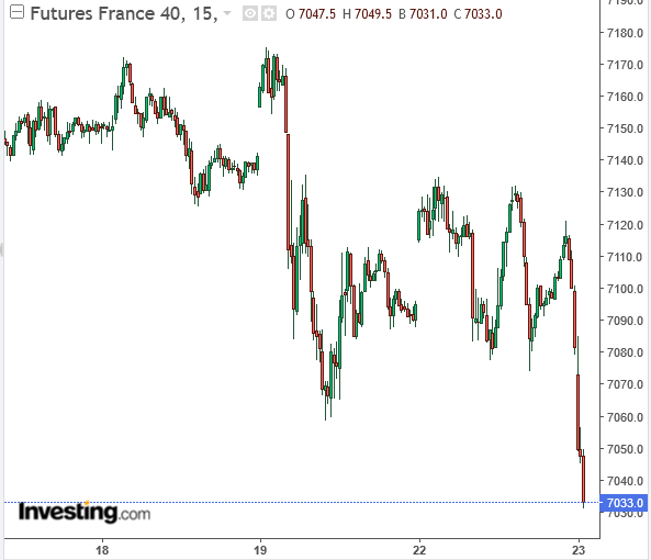 Sur future CAC (pour ne prendre que cet indice) j’ai deux seuils à court terme pour le suivi du mouvement correctif, d’abord 7090 puis le bas de la semaine dernière à 7060. Permettra de gérer les positions en cours.