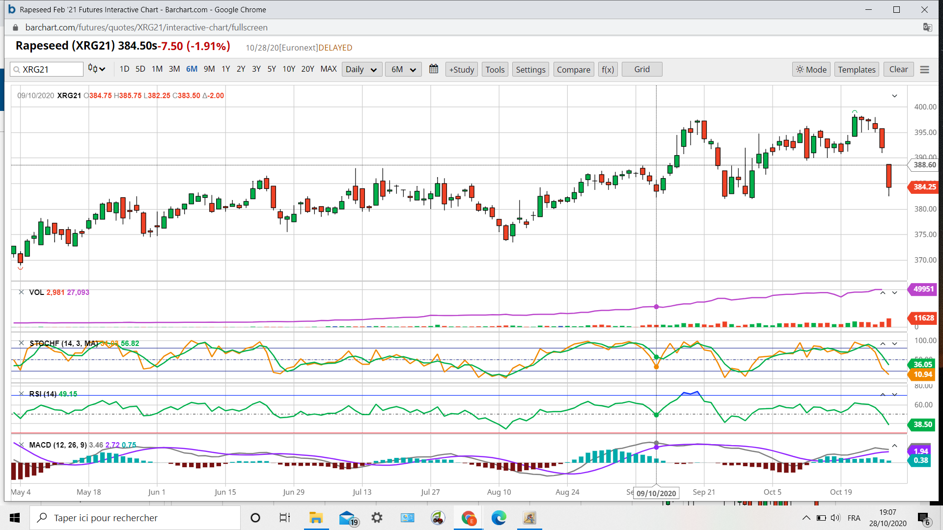 J’attends de voir la tenue de 380 à l’approche du 3 Nov pour revenir sur le colza.