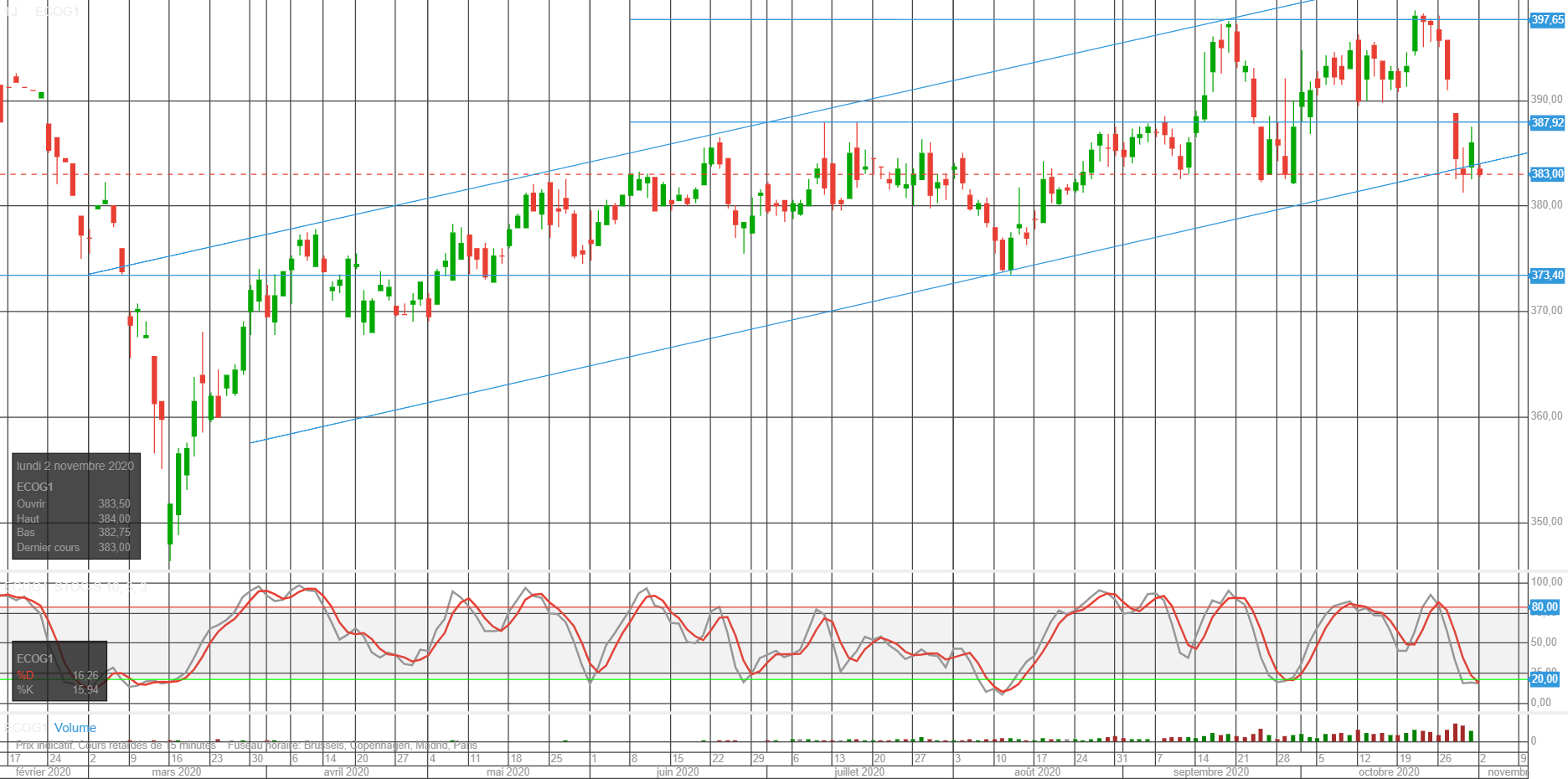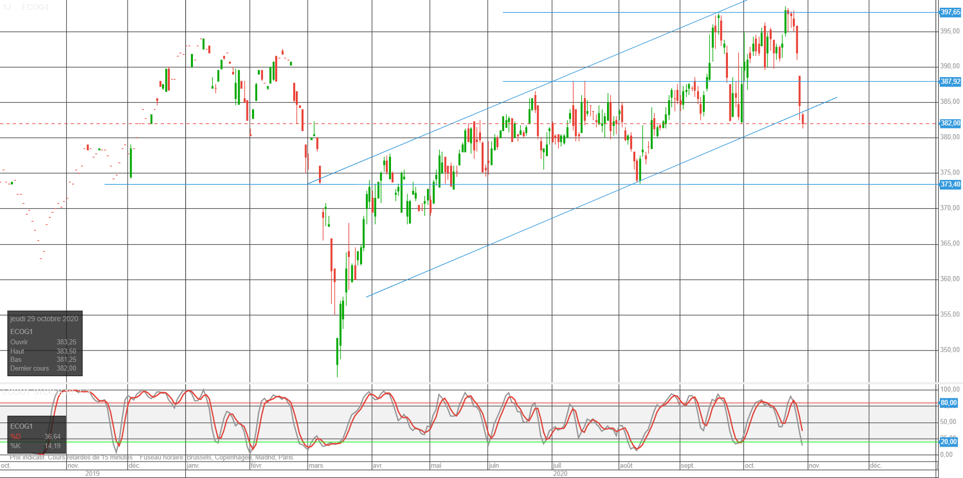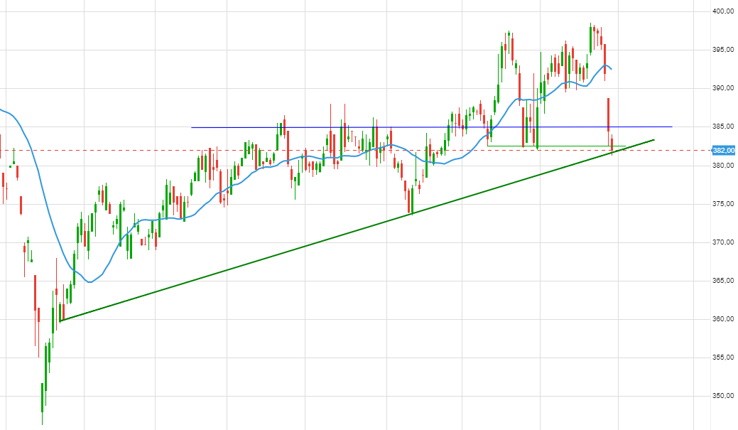 Tant que le gap 390 n’est pas repris le risque baissier augmente.