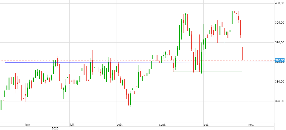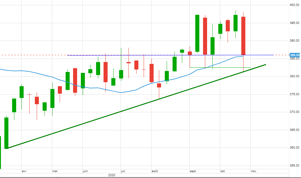 Le marché continue d’acheter le support 380 ce lundi, pour plus de certitude/validation laissons passer l’élection US.