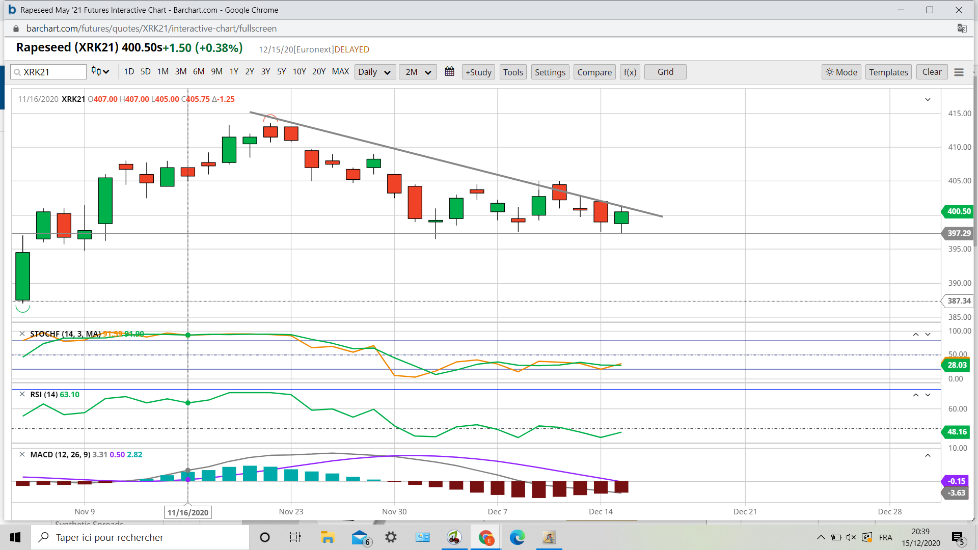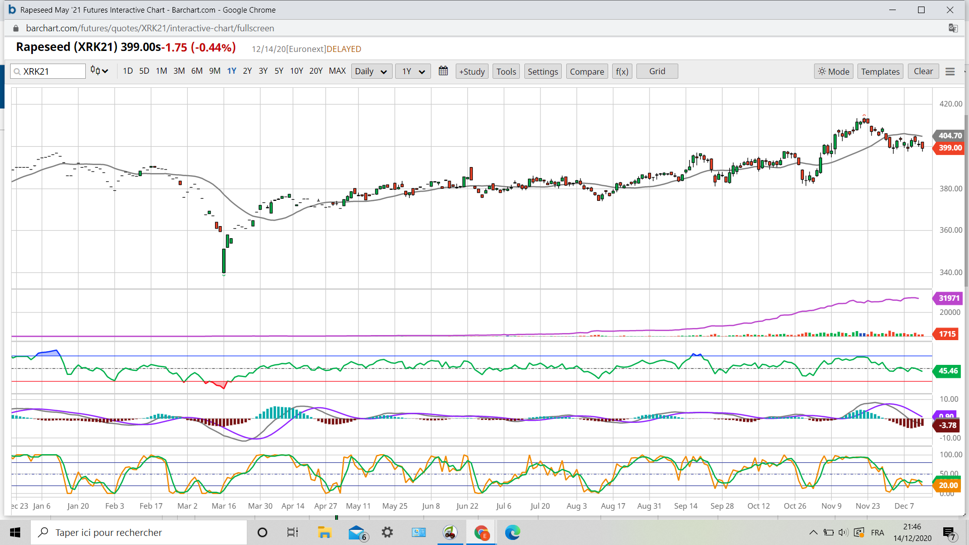 Mais voyant la poussée du canola au plus haut de 7 ans, le tournesol au plus haut et surtout avoir pris 200 euros depuis septembre l’envolée du colza était pour moi une evidence.La campagne n’est pas fini je suis peut être impatient et j’attends le retour sur les 385 pour prendre des calls .