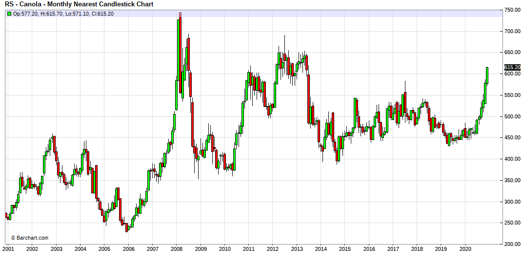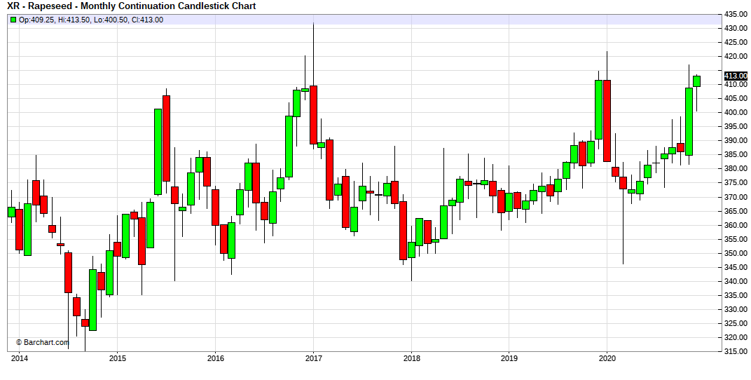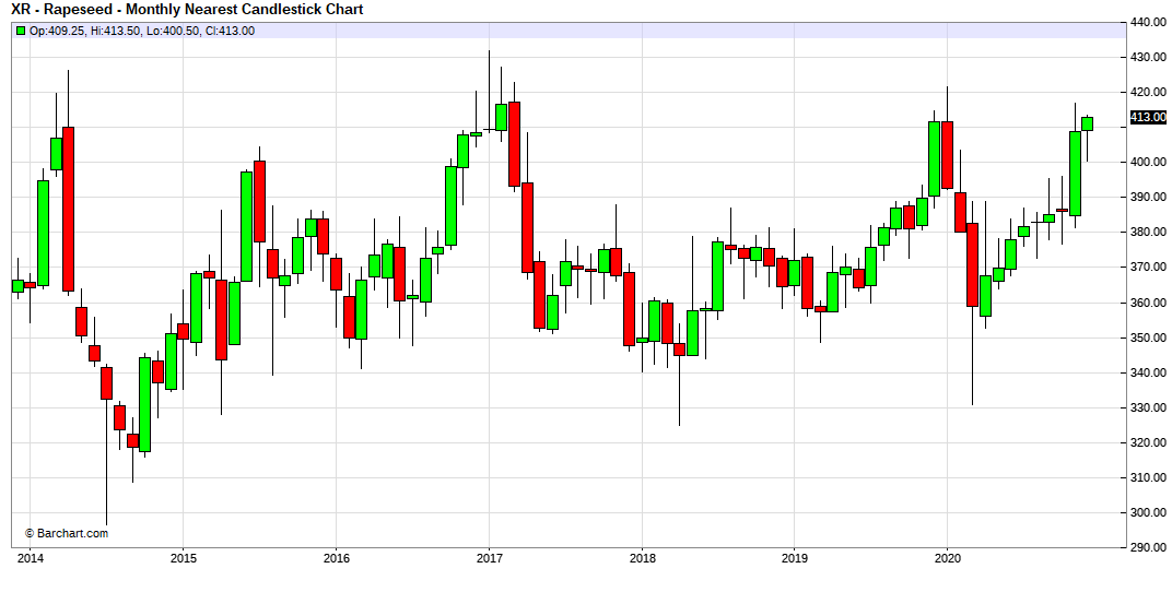 Nous examinerons à partir de 2021-2022 si le colza peut enfin pousser au-delà de 340-420, par le haut tant qu’à faire ! Déjà fonction de soja 1200. + €/$.