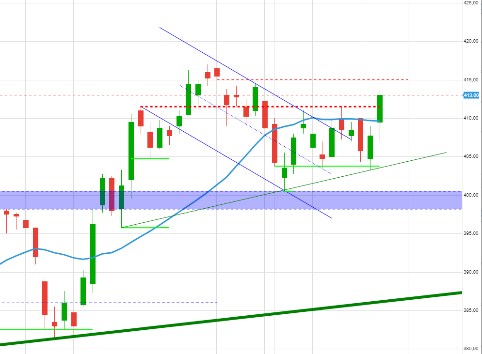 Le haut du range, c’est précisément 411.50, mais souvent j’arrondis quand j’écris ici.