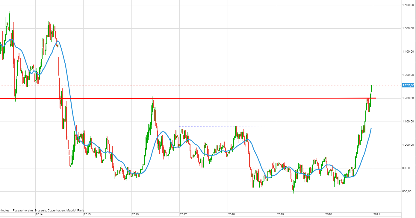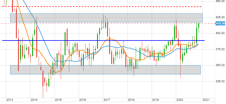 Le marché continue de bloquer sur la zone 420 pour finir 2020.