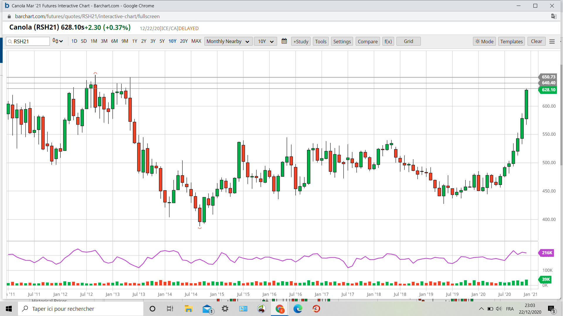 Dans tous les cas le grand objectif du colza sera de s’extraire de cette limite en place depuis 2013, et donc pour cela de parvenir à exploser clairement 440.