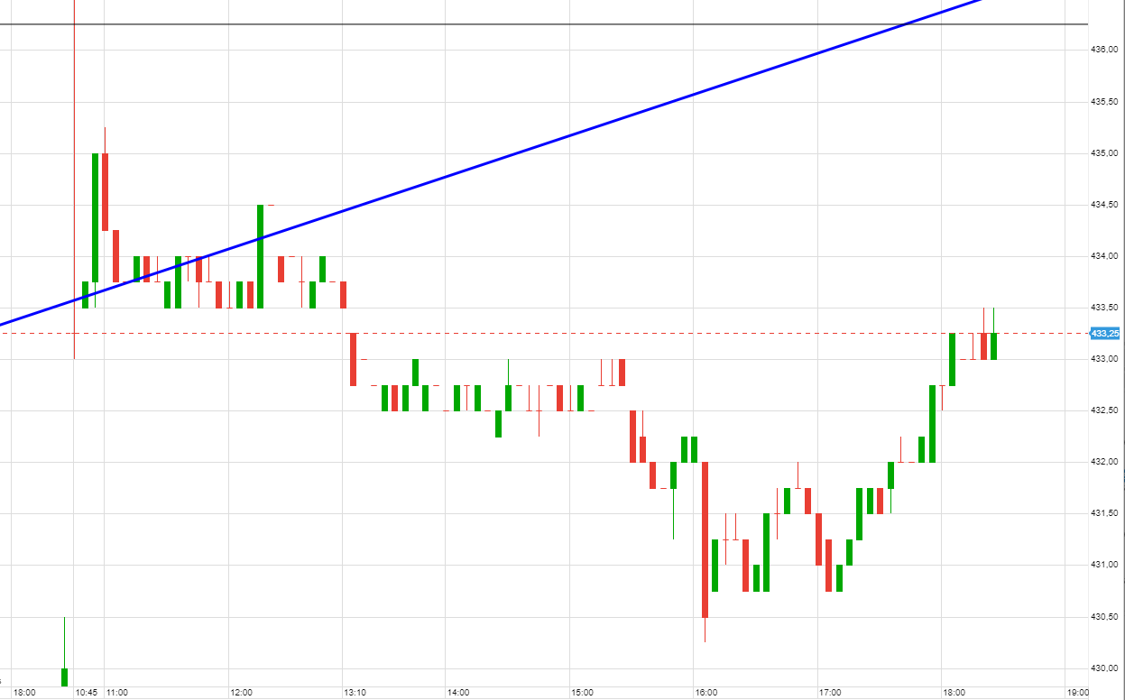 On est revenu en rase motte à 430.25 dans l’après-midi.