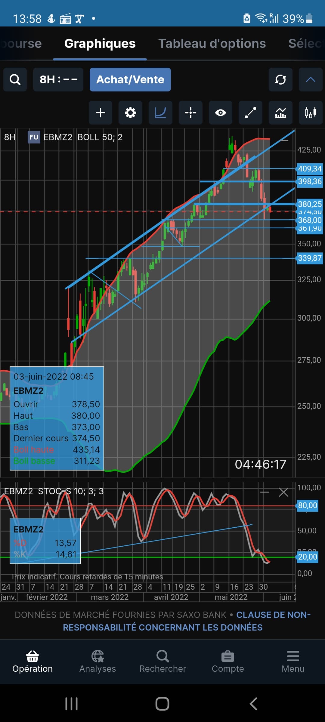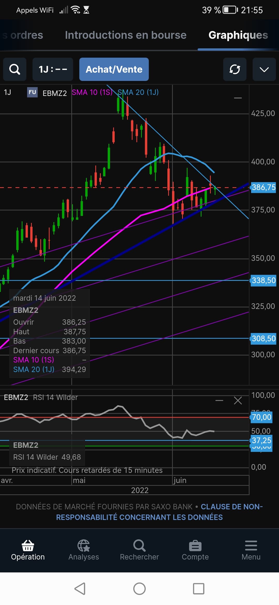 pour afficher la MM 10 ou 20 hebdo sur saxo, c’est SMA qu’il faut choisir ?