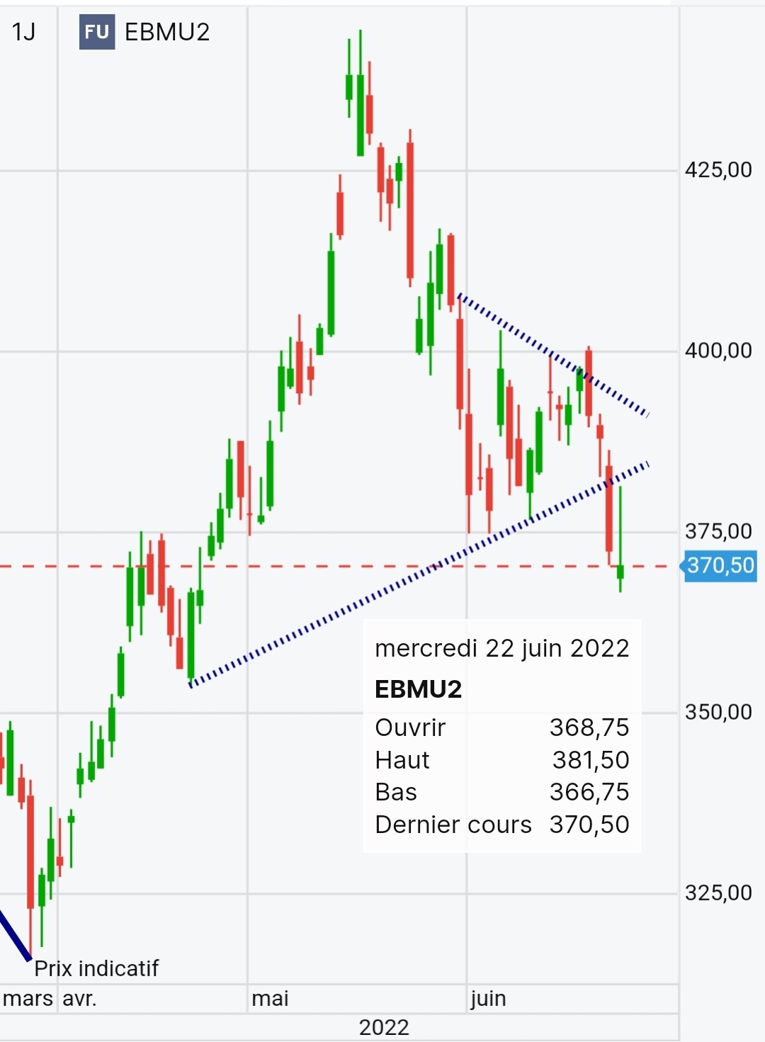 Tu en penses quoi de la bougie du blé décembre 22?Si pas de rebond demain plouf…