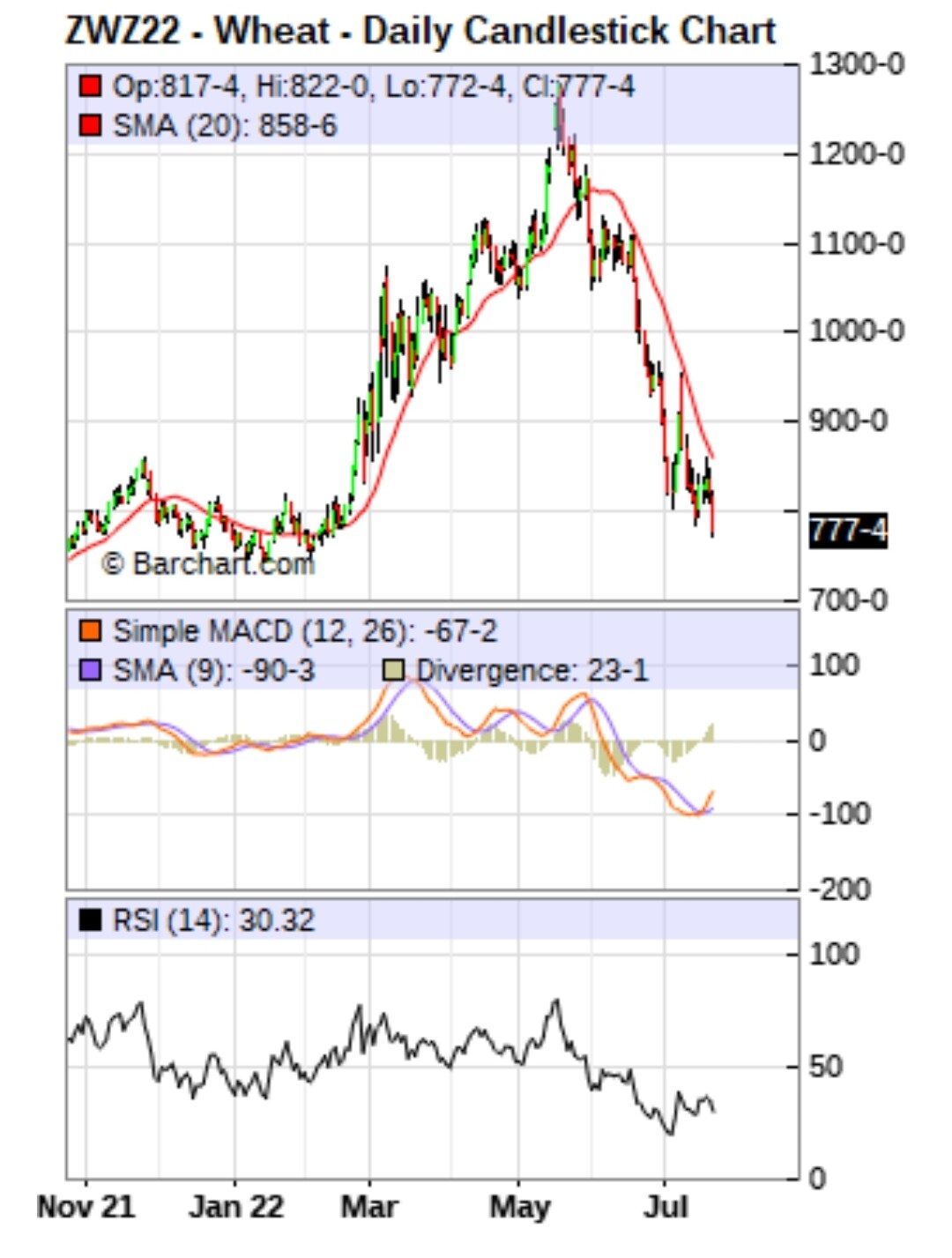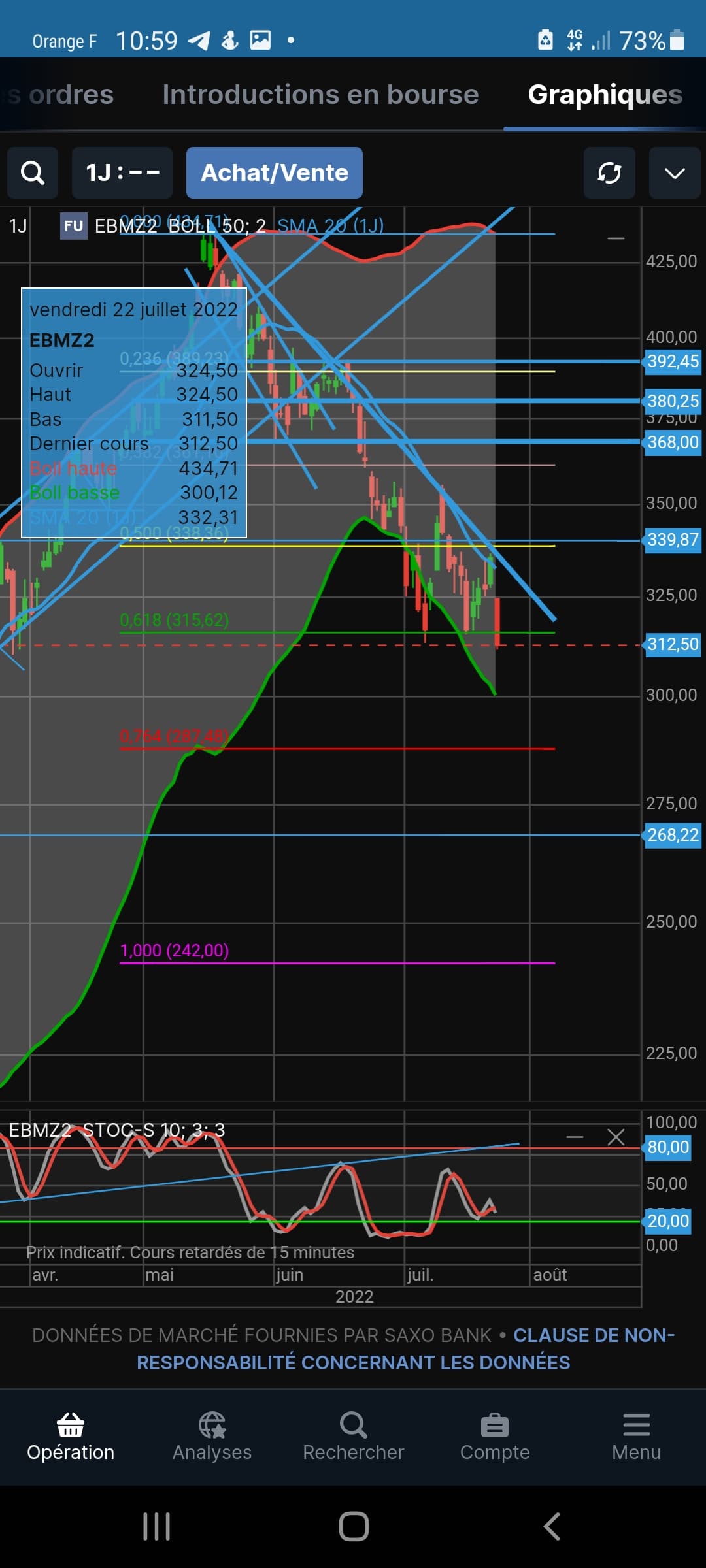 Pour la suite, après cette période de moisson hémisphère Nord et la correction récente, je me prépare à revenir peu à peu aux achats à l’approche de la tendance haussière de fond. Zone large 320-280. Stop max / invalidation 250-260.