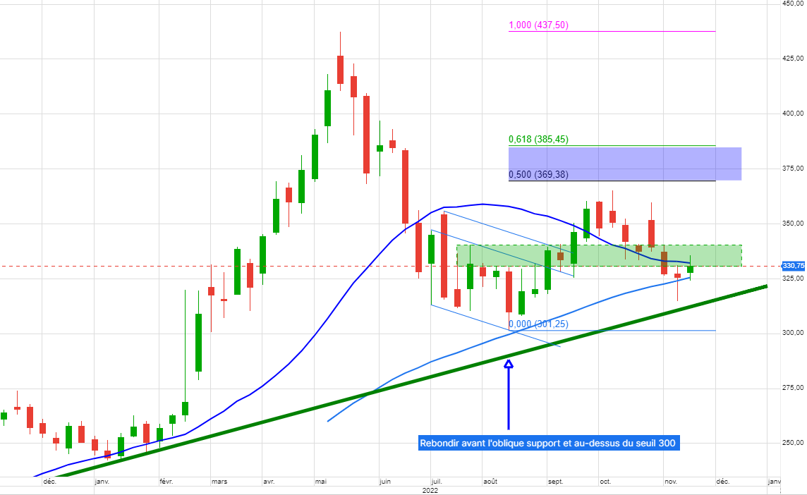 Dit autrement, ça veut dire qu’il faut reprendre 330 pour stopper l’aspiration par le bas et le seuil 300.