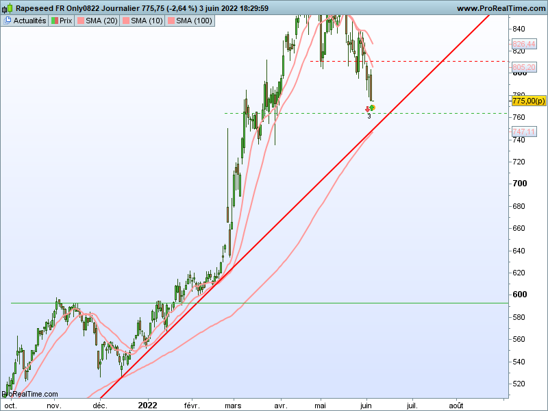 Colza dans la zone 780/790. Une relance serait bienvenue…