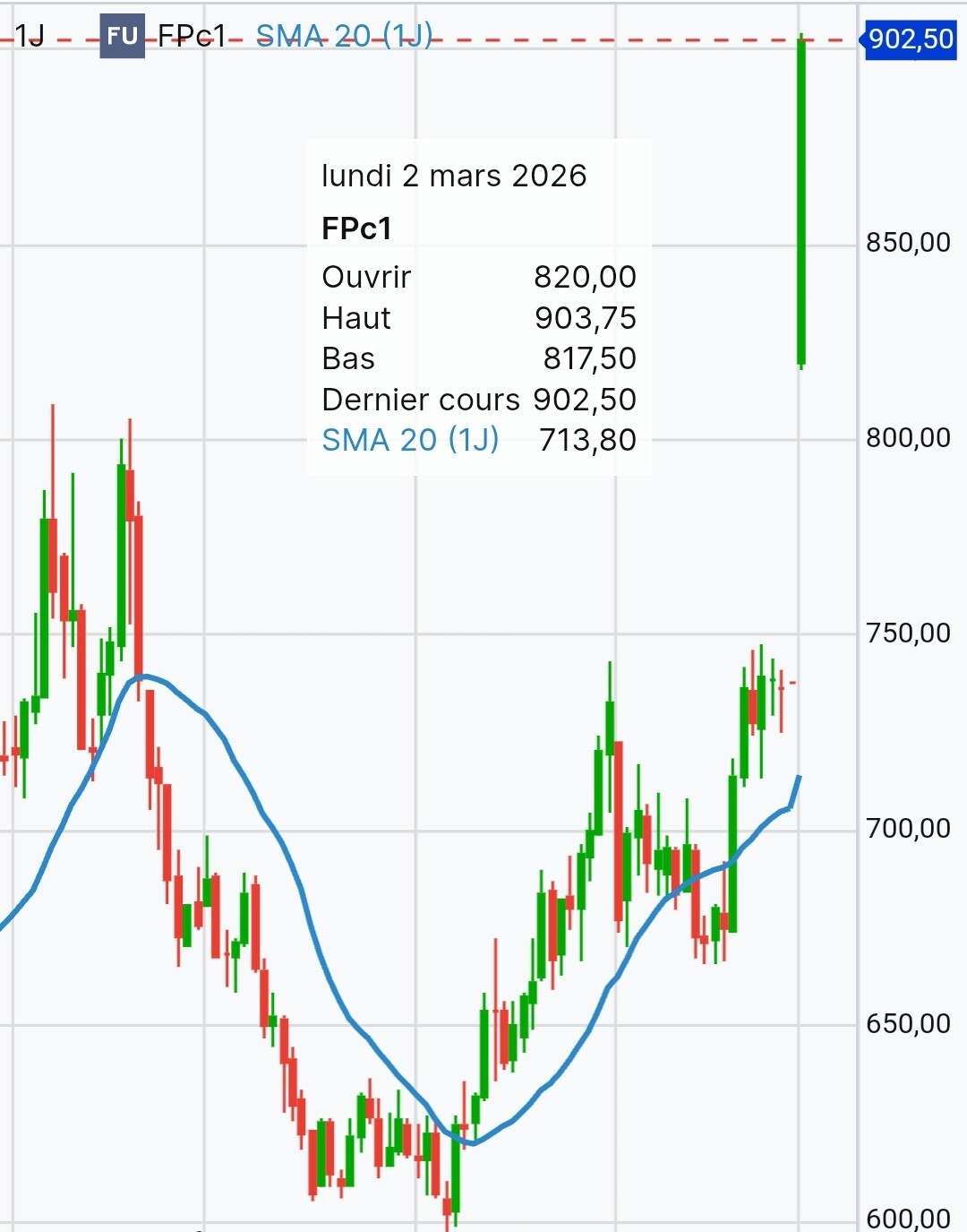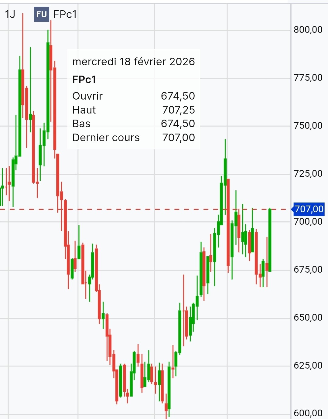 Ci-dessous le graphique du contrat février 26 et mars 26.